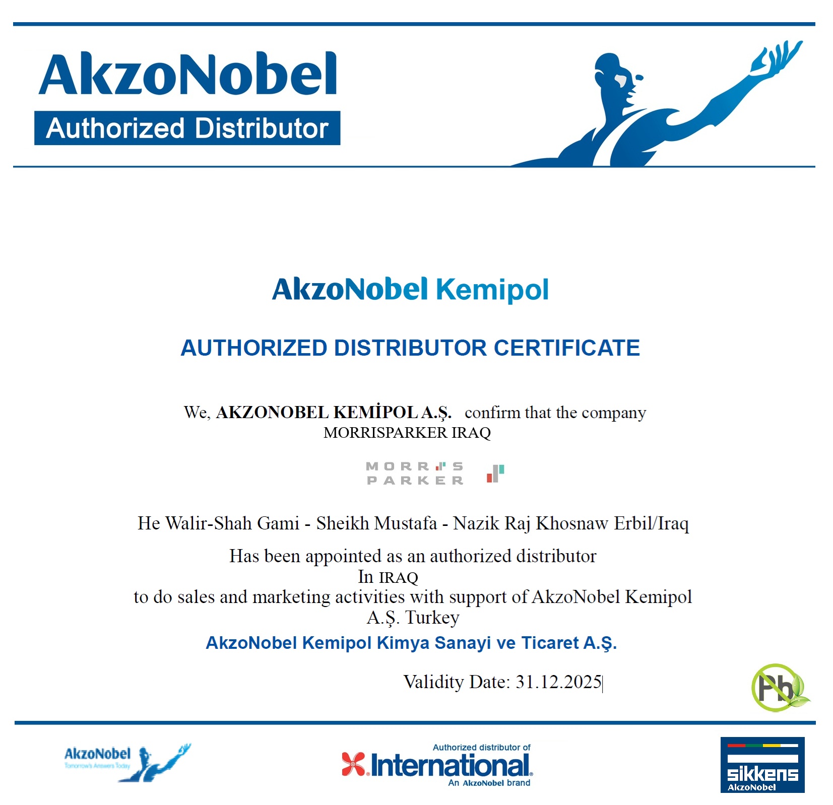 شركة موريس باركر هي الممثل الحصري والمستورد لمنتجات الطلاء والورنيش واللاتكس الرائدة في العراق من AkzoNobel.